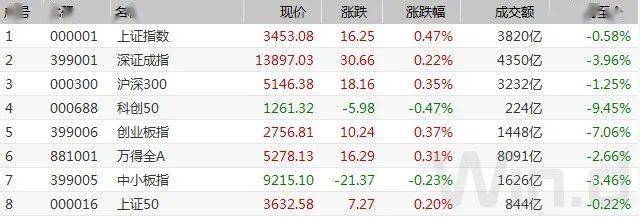 3月12日,沪深两市小幅收涨,截至收盘,上证指数涨0.47%报收于3453.08点;深成指涨0.22%报收于13897.03点;创业板指涨0.37%报收于2756.81点,万得全A总成交8091亿。