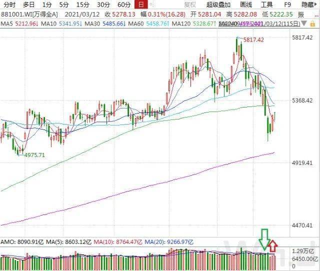 从上周市场走势来看,下跌放量,反弹缩量,显示出投资者对后市行情的谨慎心态。具体来看,3月8日和3月9日,连续两天下跌均超过2%,成交额均超过9700亿元;随后三天市场企稳反弹,3月10日和3月11日,成交额不足8000亿元,3月10日,主要股指略有反弹,但成交额仅7447亿元,去年12月中旬以来新低。3月12日成交额刚刚突破8000亿,整体看,市场连续三天温和放量。