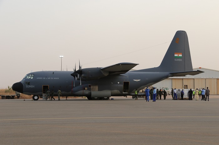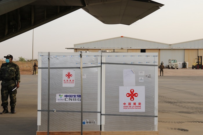 当地时间3月21日,装载着中国政府援助新冠疫苗的尼日尔空军运输机平稳降落在尼首都尼亚美迪奥里·哈马尼国际机场。尼日尔总统伊素福、总理拉菲尼、代理公共卫生部长博托等多名政府部长、外交机构和国际组织驻尼代表共同赴机场迎接。中国驻尼日尔大使张立军携使馆工作人员也前往接机。