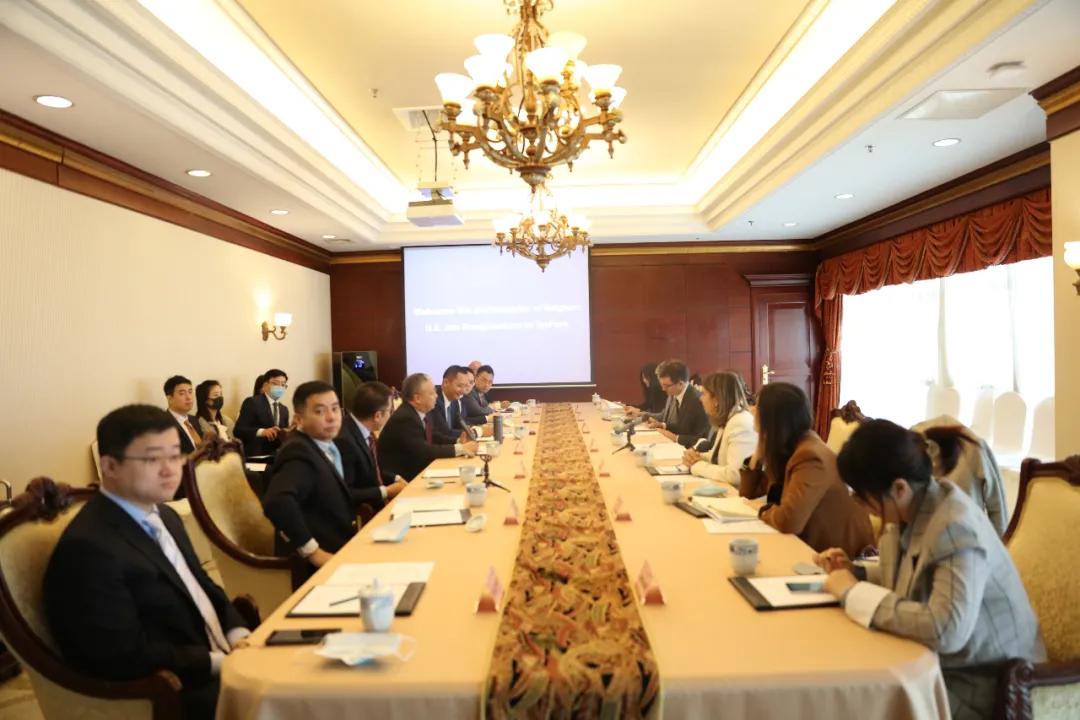 3月25日上午,比利时王国新任驻华大使高洋阁下(Jan HOOGMARTENS)到访启迪,并与启迪控股首席运营官、启迪科服集团董事长王书贵,启迪科服集团战略股东及基金投资人河南豫资集团董事长秦建斌就三方未来合作进行会谈。