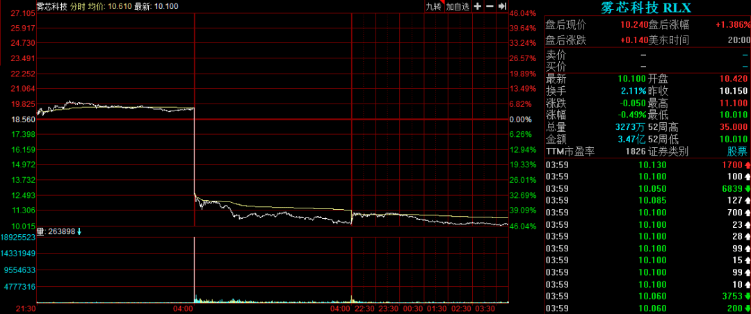 由于上述消息发布时,A股和港股已经休市,所以,处于盘前交易时段的美股成为重要的风向标。当地时间周一,美股上市的电子烟龙头雾芯科技收盘大跌超47%。23日,雾芯科技股价继续下跌0.49%,跌幅收窄。