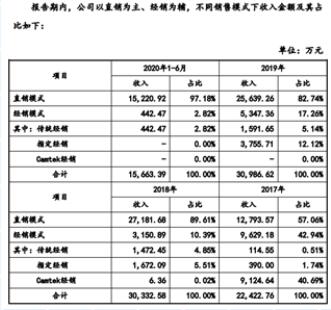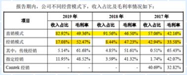 显然,2018年和2019年,首轮问询回复所披露的直销和经销模式销售收入占比与招股说明书所披露的结果完全不同。如果说首轮问询回复中两种销售模式的收入占比是基于各模式销售收入计算而来的话,那么招股说明书中这两种销售模式的收入占比又是从何而来?