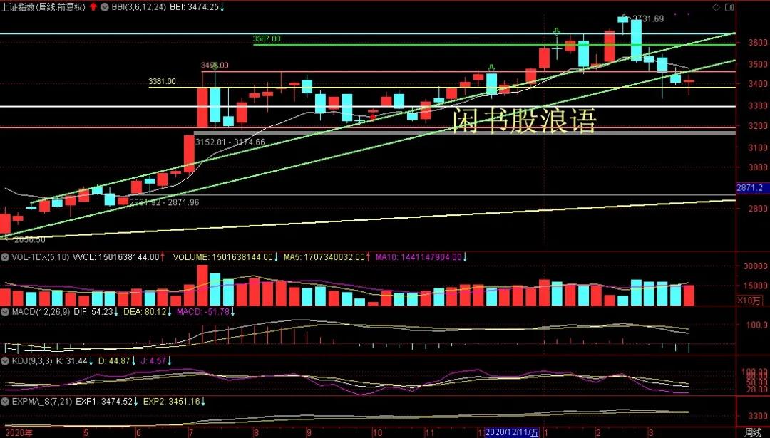 月线图看:5月线向上,在3455附近(下周四会升至3460);10月线向上,在3340附近;20月线向上,在3118附近;30月线向上,在3018附近;60月线向上,在3071附近。目前已运行在5月线下,中期已现走坏之危,只有3月收官时重回5月线上,中期才能避免走坏。