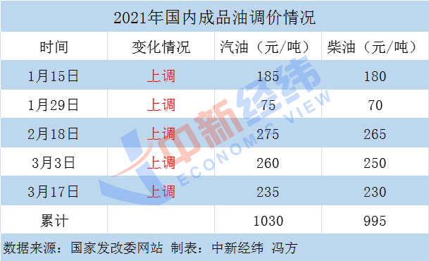 中新经纬客户端注意到,2020年国内成品油价格以“四连涨”收官。进入2021年,国内油价已“五连涨”。累加2020年末调价,国内油价自现行调价机制2013年春天执行以来,首次“九连涨”。如此次下调兑现,国内成品油价格将出现年内首次下跌。