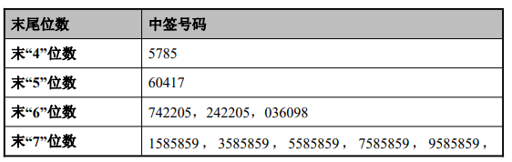 中签号码如下: