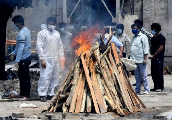 5月7日,人们在印度德里焚化新冠逝者遗体。新华社发