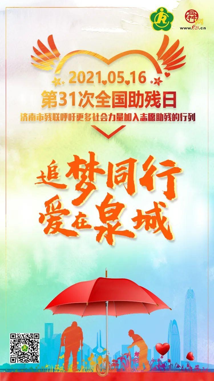 全国助残日是中国残疾人节日。《中华人民共和国残疾人保障法》第14条规定:“每年五月第三个星期日,为全国助残日。” 今年5月16日是第三十一次全国助残日。此次助残日主题为“巩固残疾人脱贫成果,提高残疾人生活质量”。围绕这一主题,中国残联确定了一系列宣传口号。助残日来临之际,济南市残联与舜网联合推出助残日主题系列电子海报,倡导更多社会力量加入志愿助残的行列。 “追梦同行,爱在泉城”,让我们心手相连、共筑未来!