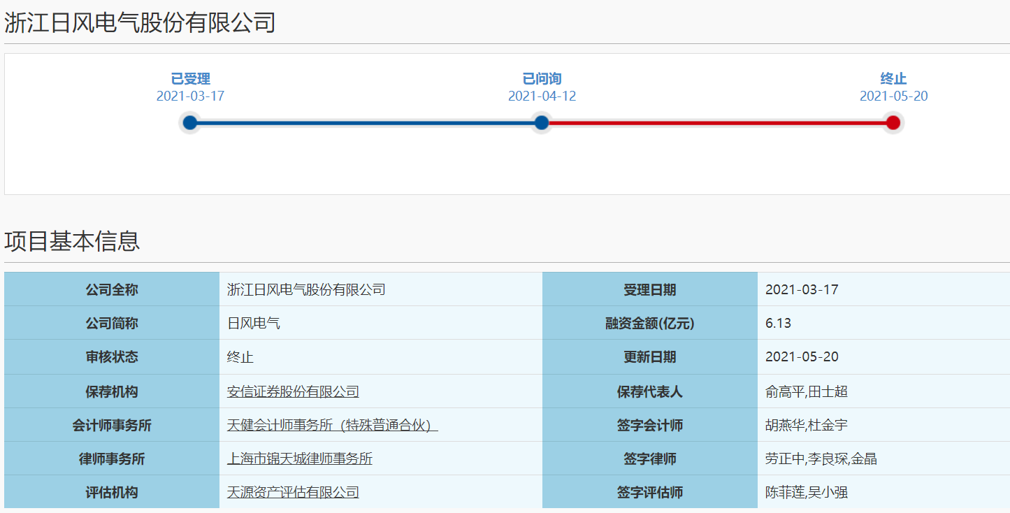 5月21日,资本邦了解到,浙江日风电气股份有限公司(下称“日风电气”)科创板IPO终止审核。
