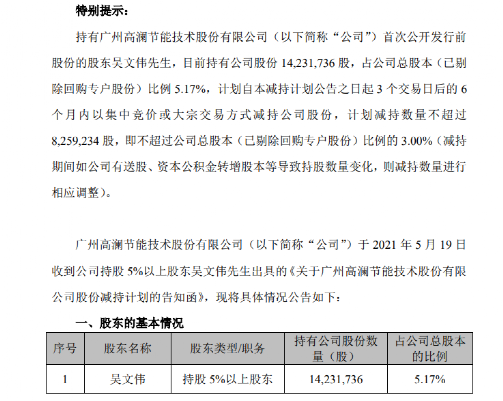 在发布拟减持公告前,吴文伟持有公司股份数量为14231736股,占公司总股份5.17%。