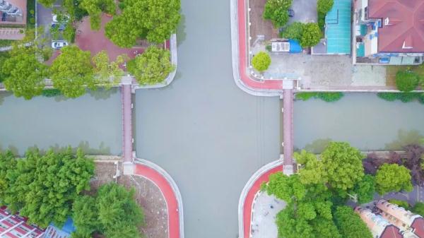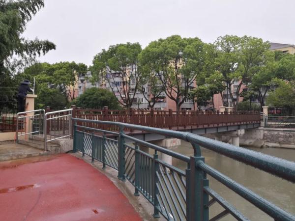 此前,莘松中学、莘松八村北面被庙泾港阻断无法通行,在铺设步道时,团结河和庙泾港交汇处新建了2座带有复古韵味的人行桥梁,整条步道从南辅路到莘浜路全线贯通。对于附近居民,散步、慢跑都非常适宜。