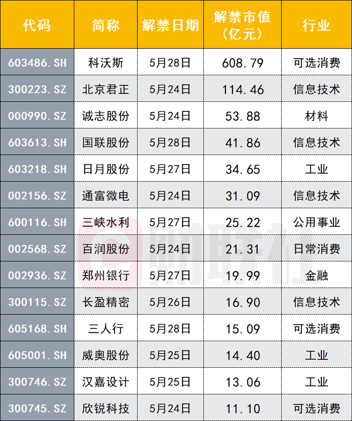 10倍大牛股超600亿解禁来袭!已有公募提前减仓,这些个股解禁压力也大(附名单)