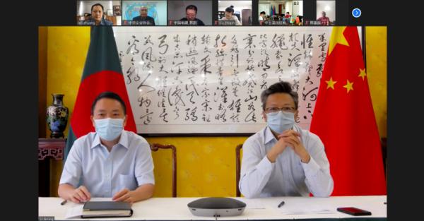 5月28日下午,''春苗行动''线上启动仪式暨在孟中国公民疫情防控联席会议在达卡举行,李极明大使做主旨讲话和动员,中资企业协会林维强会长、华联会庄立峰会长及部分志愿者代表出席。