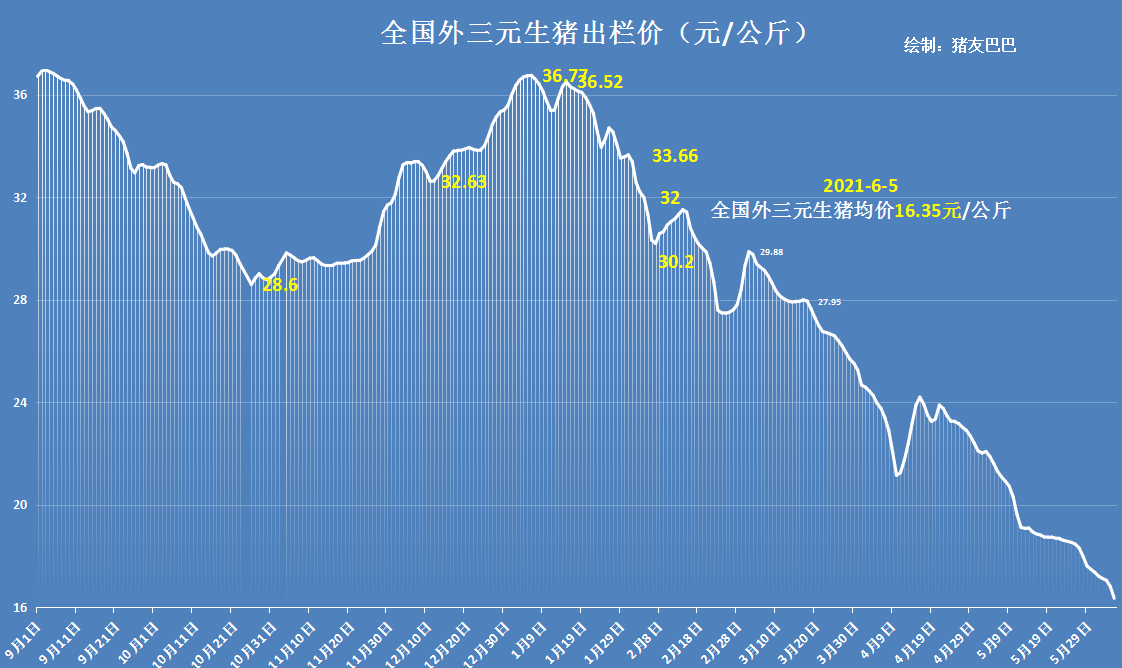 据猪价行情显示,目前,全国生猪价格已经跌至16.35元/公斤,猪价短短2日,下跌达0.7元/公斤,猪价跌势加剧,行情上涨再次落空!目前,在北方市场,猪价进一步走低,其中,局地猪价已经跌入7元/斤时代,而在南方市场,猪价也呈现震荡下行的行情,南方高价区也陆续跌破了8.5元/斤,猪价跌势不减,这与端午假期利好支撑格格不入!