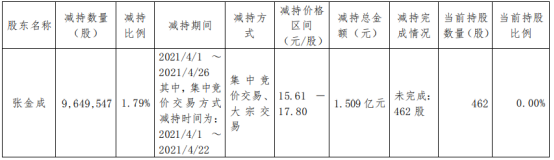 公告显示,减持前张金成合计持有公司股份9,650,009股,本次减持后持有股份462股。