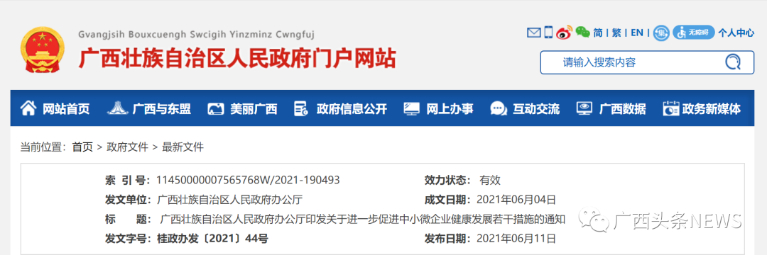 截图自广西壮族自治区人民政府网站。