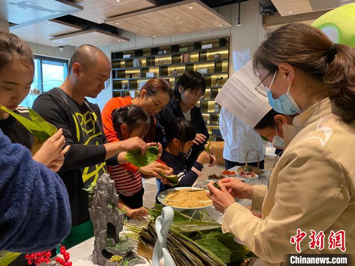 端午假期,游客在排云型旅体验包粽子 邵海钊 摄
