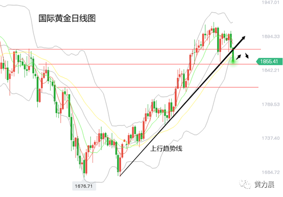 走势上,黄金价格持续调整,短期下跌风险有所加剧。金价下方支撑,继续关注1850美元附近,若黄金跌破这里,短期跌势可能放大,继续关注金价从去年高点2074美元跌至今年低点1676美元,这段走势0.382黄金分割线位置1828美元附近。金价上方阻力,关注4小时5日均线1865美元附近,日线和周线5日均线1881美元附近。总体来看,黄金走势疲软,目前暂时止跌企稳,但反弹乏力,同时在美联储会议之前,预计金价大跌的可能性不大,因此操作上黄力晨建议尽量逢高布局空单,谨慎追空,多单方面1850美元上方逢低可考虑布局,下破观望。