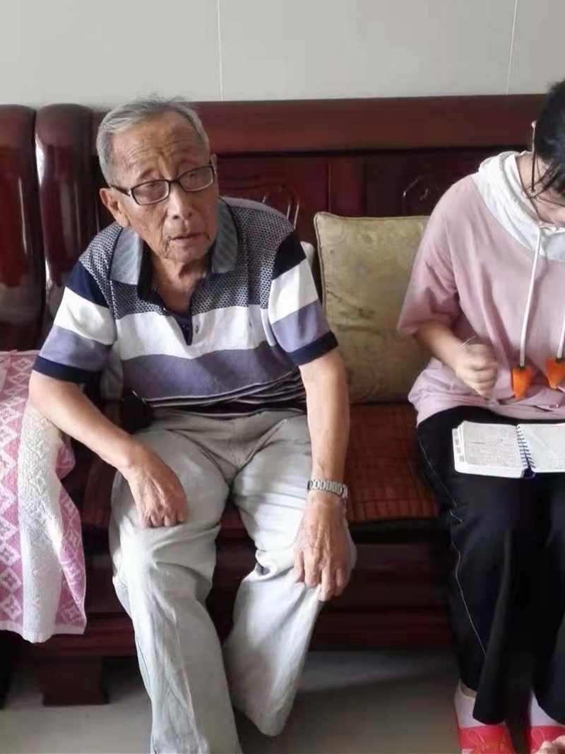 在门外,金灿灿的“光荣之家”的牌匾就已经昭示了这户人家的不凡。据了解,韩爷爷已经九十岁了,入党有七十多年的时间。韩爷爷回忆着年轻时入党的情景,脸上深深浅浅,如沟壑般纵横交错的皱纹因为温暖的笑容而连聚在一起。“当时入党完全是自愿的,”韩爷爷自豪地说道,1948年,没念过书的韩爷爷怀着对革命的满腔热血,成为了41军121师362团中年轻的一员,并参与了平津战役。一提起那个战争年代,韩爷爷仿佛打开了话匣子,激动地讲述着当年的经历。