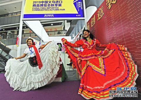 11月23日,表演者在展会上起舞。 11月13日至27日,2019中国义乌进口商品博览会秋季展在浙江省义乌市举行。本届展会以“世界商品,义乌采购”为主题,共有来自俄罗斯、英国、印度等57个国家和地区的400余家企业参展,产品涵盖家居生活、母婴用品、食品等。 新华社记者 谭进 摄