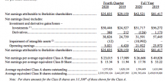2月27日,股神沃伦巴菲特旗下伯克希尔哈撒韦公司发布2020年财报。 数据显示,伯克希尔哈撒韦2020年第四季度运营利润50.2亿美元,同比增长14%。第四季度投资净收益304.5亿美元,上年