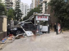 今天(12月29日)上午9点多 在福田区农林路55号 佳泰兴苑小区的门口 发生了一起意外事故 在小区出口处 一辆黑色的轿车本应正常过闸 但车偏离了正确方向 一头撞向了小区的收费亭 在