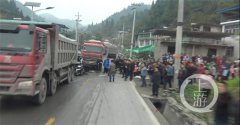 今(3)日13时左右,涪陵区江北街道碧水村发生一起连环追尾交通事故,越野车追尾装满石子的大卡车,又被后面的大货车追尾,撞成一团乱麻,事故造成四人被困一人当场身亡。 13时