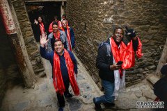 国际在线四川报道(杨梦婧):11月28日,一带一路沿线国家的40余名主流媒体成员走进四川理县桃坪羌寨,触摸羌族千年历史,体验独特的羌族文化。 外媒记者游览桃坪羌寨 摄影 徐军