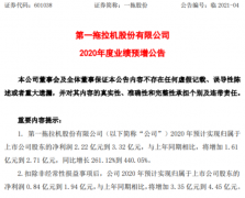 挖贝网1月29日,一拖股份(601038)发布2020年年度业绩预告:预计2020年实现归属于上市公司股东的净利润2.22亿元到3.32亿元,与上年同期相比,将增加1.61亿元到2.71亿元,同比增长261.12