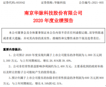 挖贝网1月29日,华脉科技(603042)发布2020年年度业绩预告:预计2020年年度实现归属于上市公司股东的净利润为3,000万元到3,300万元,与上年同期相比,增长26.81%到39.49%。 公告显示,业绩
