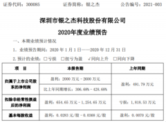 挖贝网1月29日,银之杰(300085)近日发布2020年业绩预告,预计业绩同向上升。报告期内归属于上市公司股东的净利润2000万元2600万元,比上年同期增长306.68%428.68%;基本每股收益0.0283元