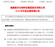 挖贝网1月29日,傲农生物(603363)发布2020年年度业绩预告:预计2020年年度实现归属于上市公司股东的净利润62,000万元-72,000万元,与上年同期相比增加59,084.43万元到69,084.43万元,同比增