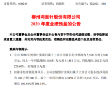 挖贝网1月29日,两面针(600249)发布2020年年度业绩预告:预计2020年度实现归属于上市公司股东的净利润为5,500万到6,500万元,较上一年同比增加10,881万元到11,881万元,同比增长202.21%到