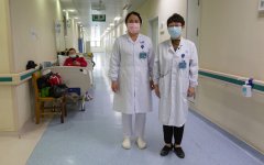 4月2日,湖北武汉,医生何平与护士胡娟娟站在协和医院西院区内。这里在封城期间被划为新冠肺炎定点医院,如今这里已恢复正常门诊。新京报记者 郑新洽 摄 庞益兵第四次跨上摆渡