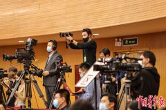 3月4日晚,北京梅地亚中心,十三届全国人大四次会议新闻发布会现场,一位外国记者举起相机拍摄。中青报中青网记者曲俊燕/摄 《财富》杂志网站:GDP增长,前沿技术和更多5G:中国