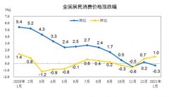 10日,国家统计局将公布2月份全国居民消费价格指数(CPI)。多家机构预测,受翘尾因素等影响,2月份CPI同比或仍处于负区间。 CPI同比涨跌幅走势图。来自国家统计局 2月CPI同比跌幅或