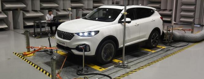 有了高的目标设定和正确的方法论,还需要一流的试验设备来支持和验证。在长城汽车的技术研发中心内,我们见到了用于验证整车级NVH性能的整车四驱半消声试验室(半消声是指房间内除了地面外的五个面都是消声墙体,全消声是指房间的六个面全部具备消声能力),在这里可以对整车进排气噪声、车内噪声振动、动力总成辐射噪声等进行测试。