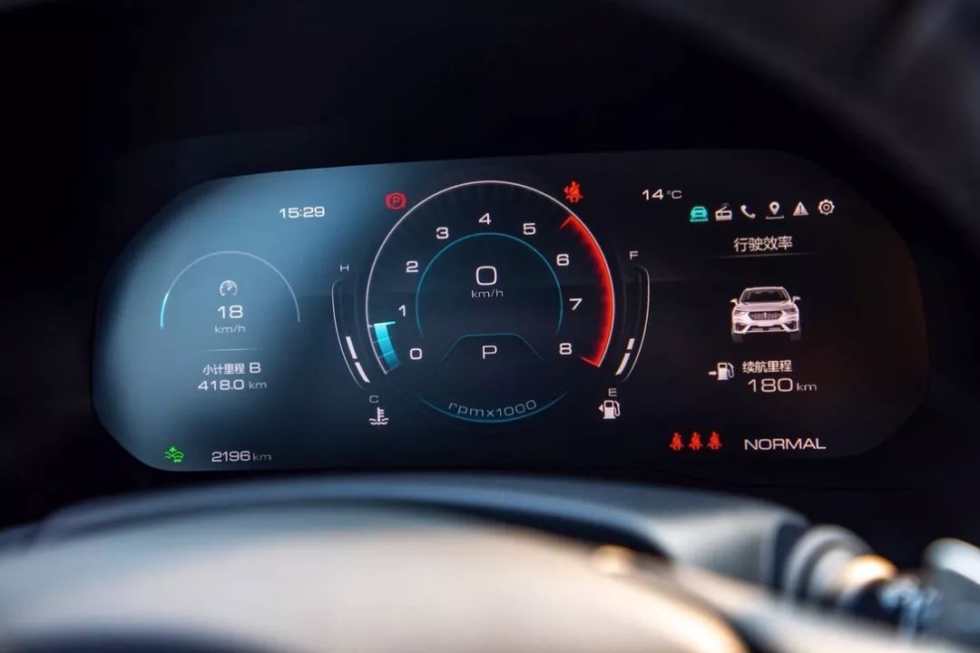 高配车型上,12.3英寸全液晶的仪表的界面设计更加时尚,并且提供3种不同的主题模式。