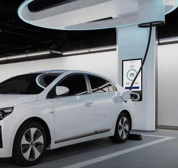 从现代发布的图片上看,该充电桩带有顶棚和LED显示屏,充电线缆被收到了上方的顶棚里。充电时,充电线缆可以自动旋转到合适的位置并伸出电线,该超级充电站充电功率为350kW。这种充电器可将充电线安装在顶棚,平时没有电动车充电时可以当作普通车位使用。