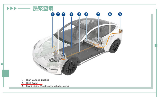 另一方面原因就是热泵空调在温度低于-10℃以下时,很难从外界获取热量,制热的效率明显降低,很满足车内的供暖需求。不过特斯拉Model Y针对性的搭载了热泵+PTC组合式空调,在车辆启动温度过低时,首先使用PTC对车辆进行辅助加热,待车辆运转后,依靠电机、电池包等产热部件,热泵空调便可以正常高效的为车内供热。可以说在保证制热效果的同时尽可能的高效节能,减少对续航的损失,让热泵空调的适用范围更大。