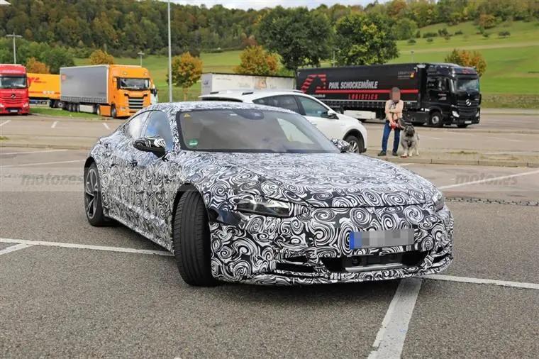 日前,海外媒体曝光了几组照片,证实为奥迪e-tron GT伪装车的路试照片。