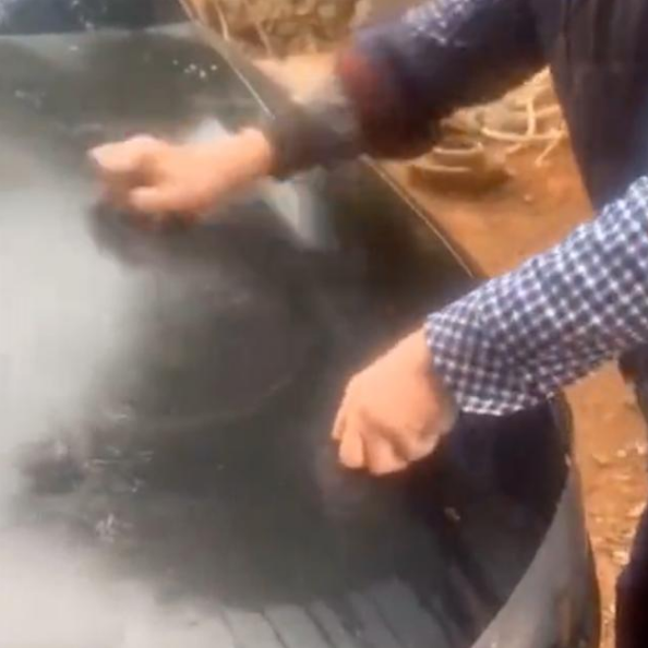 这位网友见状便放弃了自己清理车的想法,还想着将车开出去,让外面的洗车行帮忙清洗。可没想到父亲却依旧不死心,还是想靠自己的力量来将车身清洗干净。于是就拿起了家中的钢丝球来帮忙洗车。