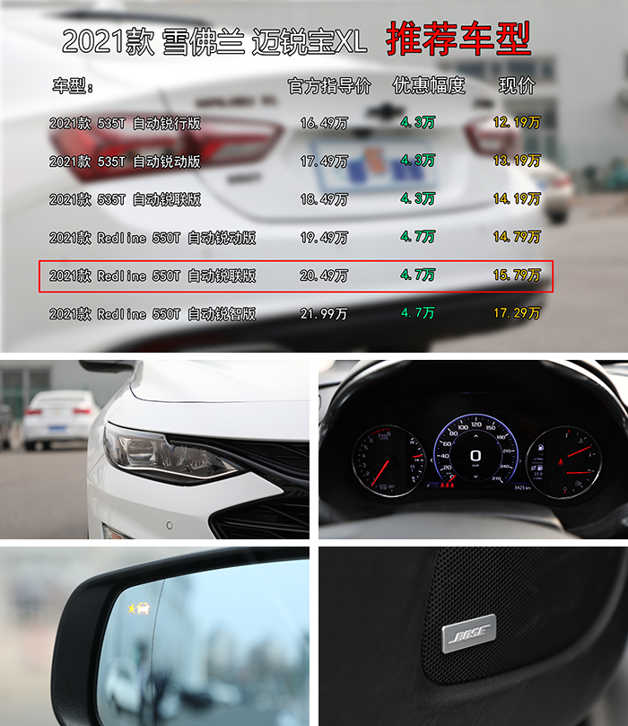 《郝车来袭》原创导购:去年年底,2021款雪佛兰迈锐宝XL正式上市,没想到仅仅过去几个月时间,新车便出现大幅优惠。根据郝哥暗访北京地区某雪佛兰4S店得知,目前新车在售六款车型,售价区间为16.49万~21.99万元,其中1.5T车型全系优惠4.3万元,2.0T车型全系优惠4.7万元,最低配优惠后裸车价仅售12.19万元,那么结合优惠情况和配置综合分析,最终选择哪款车型才最划算呢?