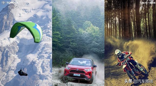 滑翔伞手借助超20米的滑翔伞伞翼及专业定位罗盘,从玉龙雪山上,成功降落到指定地点;而越野摩托车手,以丰富的骑行经验驾驶更轻量化的越野摩托车,在泥泞坑洼的山林间,几经闪、转、腾、挪,赶到集合地;另外一位专业赛车手,则驾驶着性能强悍、具备Sports Pro属性的RAV4荣放双擎E+,以最快的速度到达终点。
