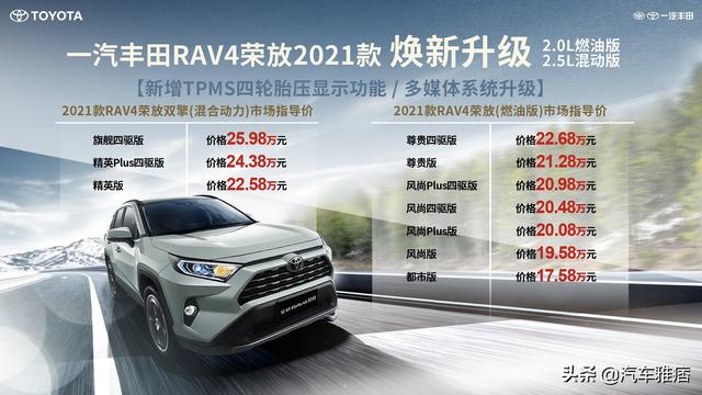 焕新升级 一汽丰田2021款RAV4荣放家族市场指导价: