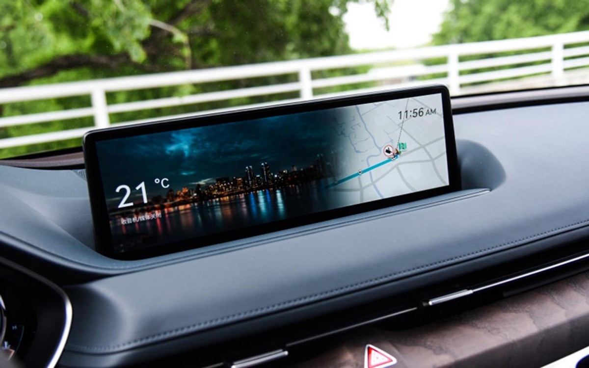 放眼整个中控区域,方向盘设计得很沉稳,有顶级豪华车的感觉。后方是一块12.3英寸的液晶仪表盘,并且支持裸眼3D效果。往中间看则是一块14.5英寸的多媒体大屏,画质细腻、支持触控,符合主流水平。再往下则是空调控制区域,整体很现代,设计也是一目了然。挡把区域则采用了旋钮式换挡设计,搭配金属亮面饰板,高级感是有的,也很好地提升了档次。