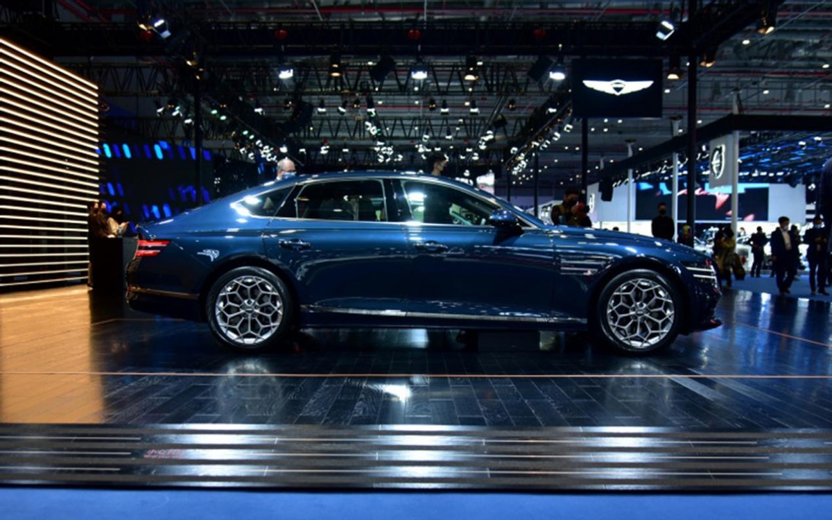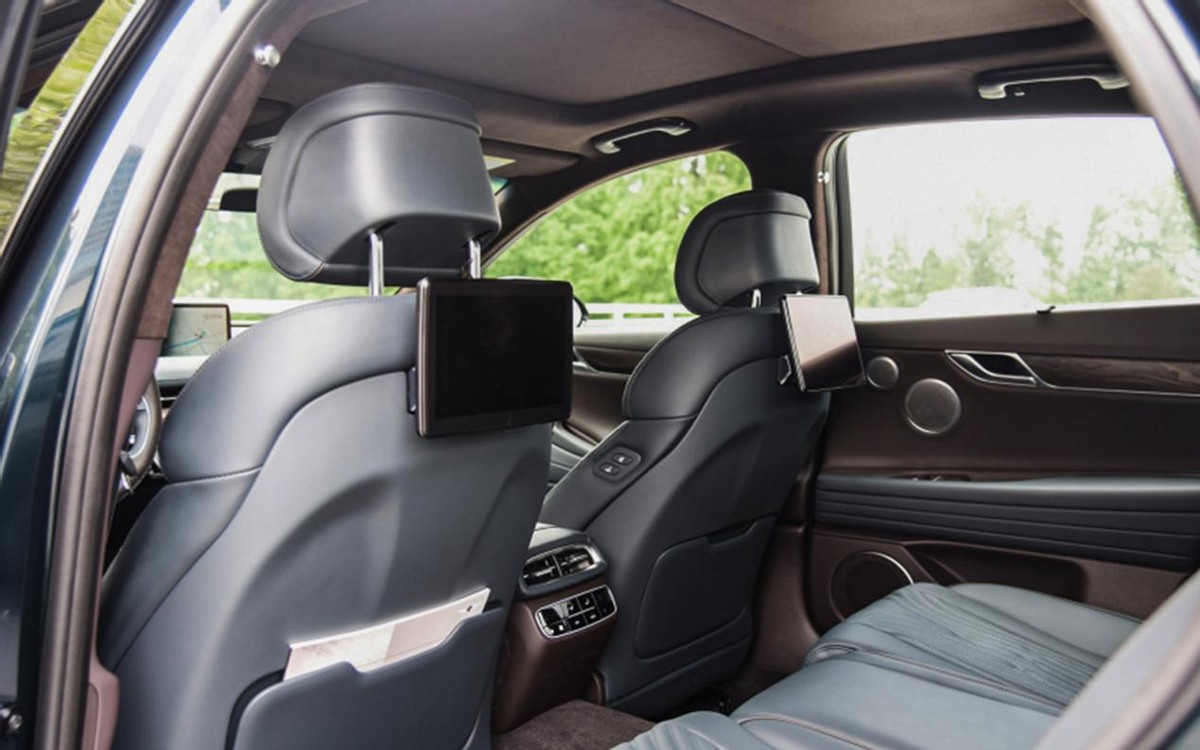 侧面有一台行政级中大型轿车该有的样子,车身长度接近5米、轴距超过3米,不输主流的德系BBA车型。另外,原装的19英寸多辐轮圈看着很有个性,此外还有20英寸的无限银轮圈可选,这点也有些类似迈巴赫S级上的大饼式轮圈设计,妥妥的韩系豪华。