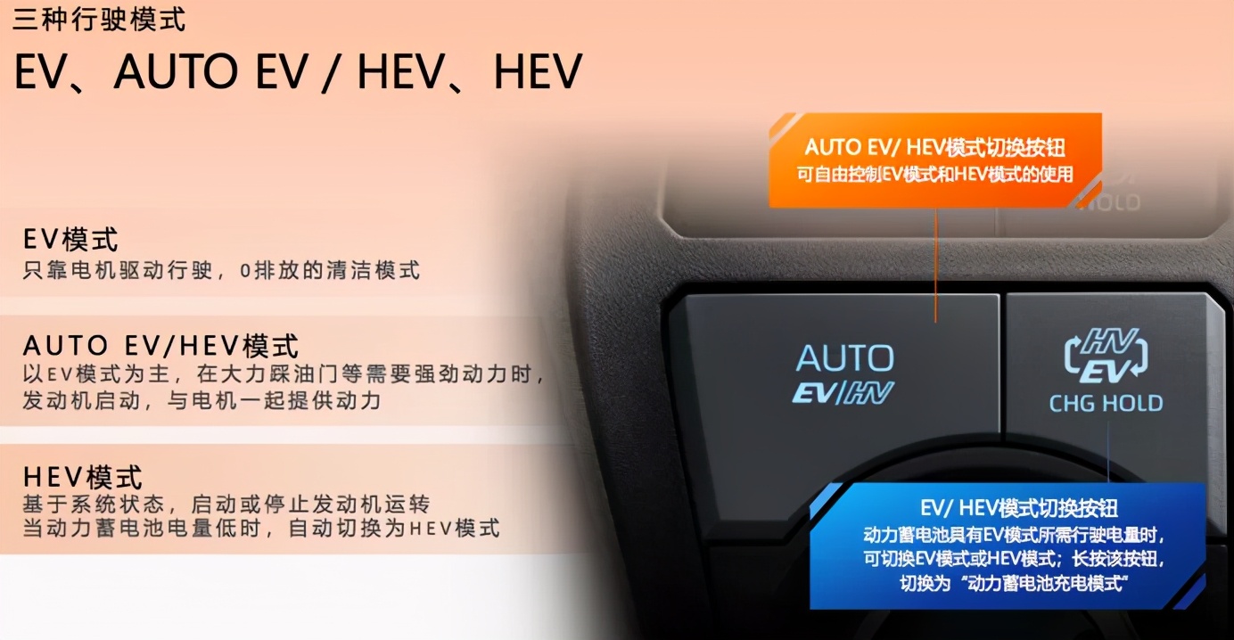 在EV模式下,车辆会以电动为主,优先消耗动力电池电能,仅在很大油门开度下会介入发动机。