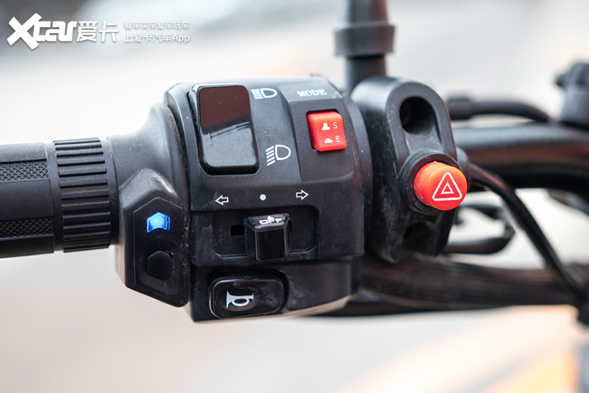 左手控制总成有几处值得说明:其一,原车标配双闪警示灯,免得后期改了;其二,带有S和E两种动力模式,不过实际体验中区别不是很大;其三,手把加热功能简直太贴心了,北方用户的福音。除此之外,左手位置和右手位置分别配有倒挡的拨杆和手刹的拨杆。倒挡是2019年新增加的配置,也是众人期盼的配置,因为对于这么一个大家伙而言还是非常有用的。增加倒挡有何影响?相比之前减少了一个前进挡,现在前进挡是4个。