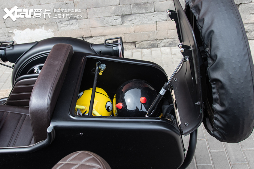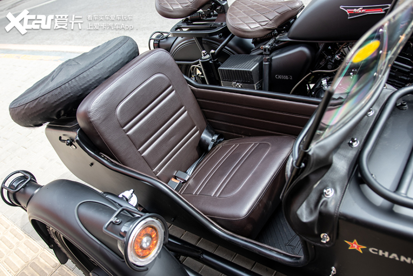 边车的座椅看着还挺舒适的,安全带是新增加的配置,不过若能向鑫源400周末风学习,改成伸缩式的则更加完美。定制版标配主车和边车风挡,十分实用的配置。边车内还带有12V电源接口和USB充电接口,以及电压显示。看见那两个开关了吗,就是控制3灯组的。