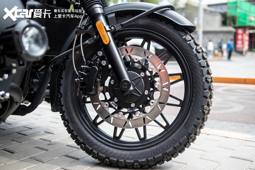 长江750配有三轮CBS联动刹车系统,前轮采用单刹车盘配单向三活塞卡钳。